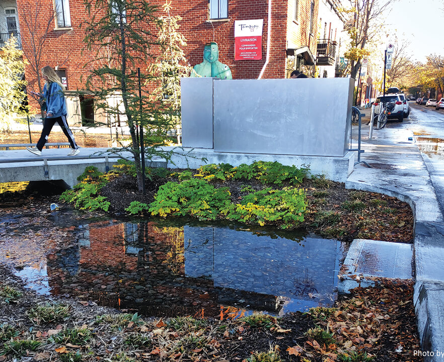 À Montréal, des fosses végétalisées bordent l’avenue Papineau. L’eau de pluie y est dirigée plutôt que vers les égouts. «C’est comme une plate-bande, mais conçue pour capter l’eau», illustre Mme Duchesne. Les racines des plantes favorisent